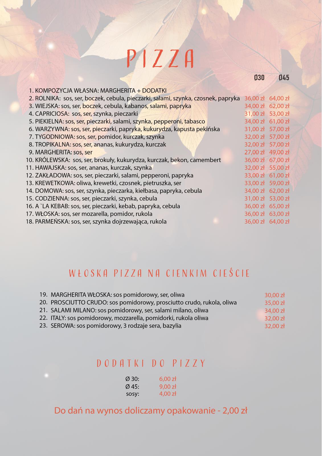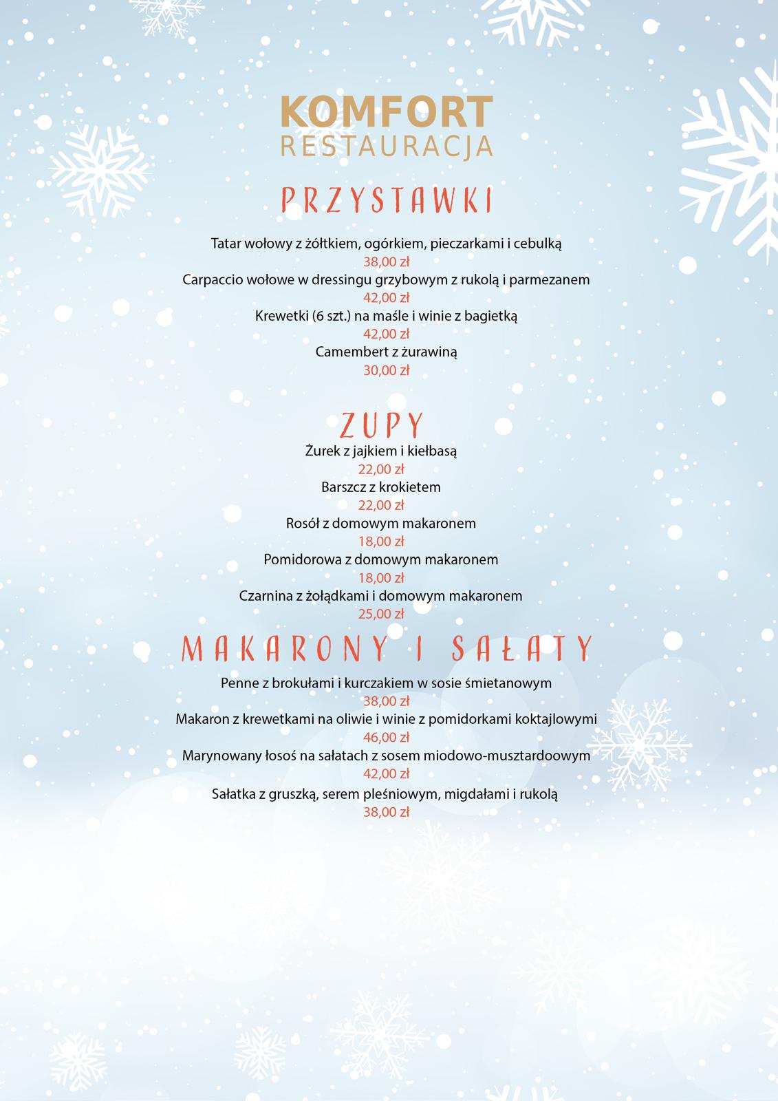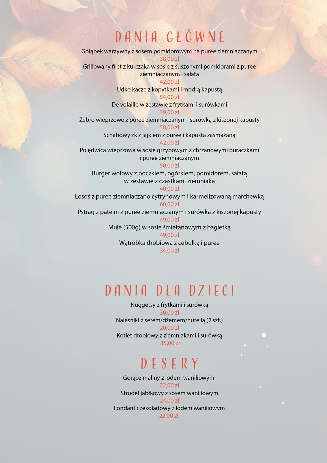 Menu restauracji